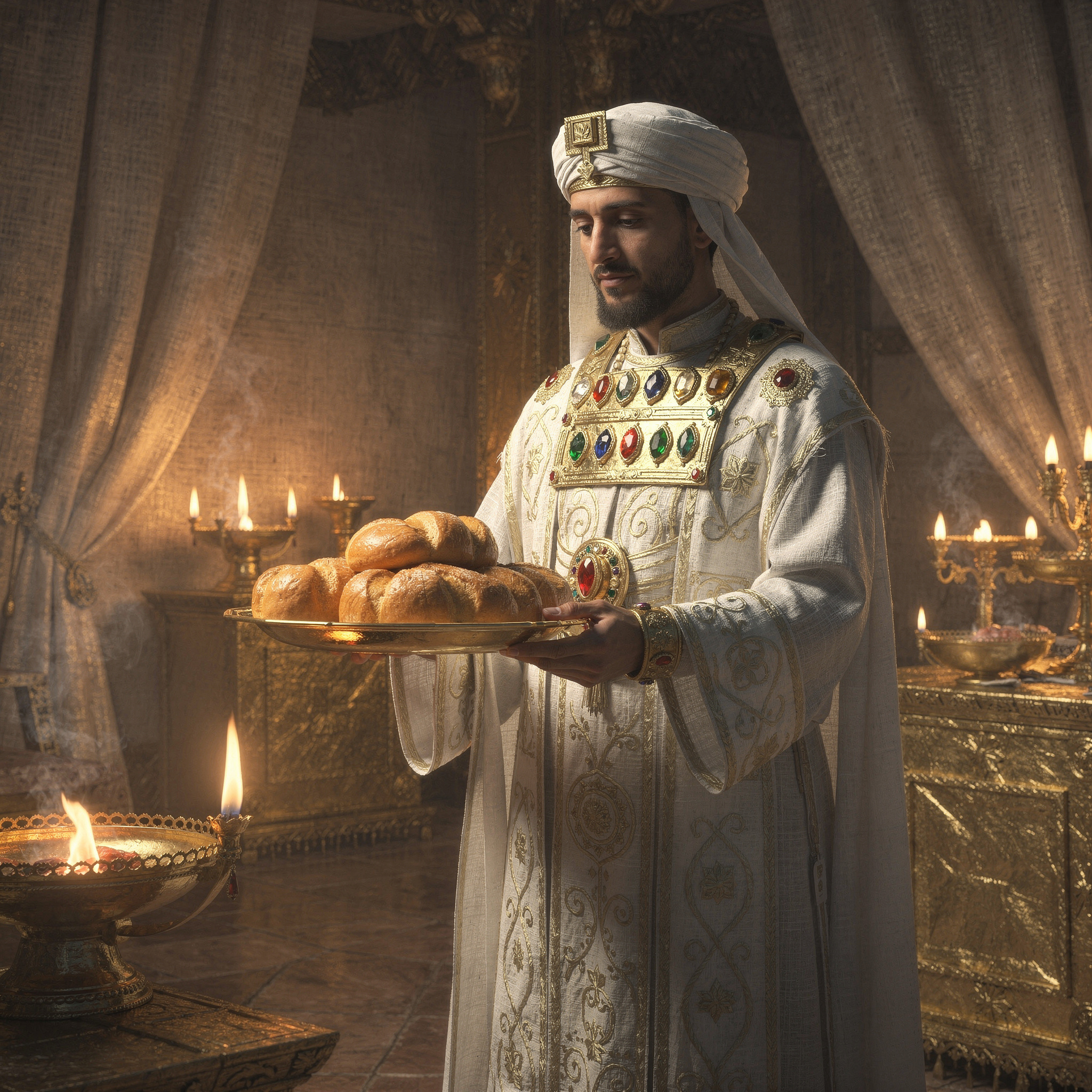 The Table of Showbread (also called the “Bread of the Presence”) was a sacred piece of furniture in ancient Israel’s worship system. It stood inside the Holy Place of the Tabernacle and later the Temple. On it were placed 12 loaves of bread, representing the 12 tribes of Israel.